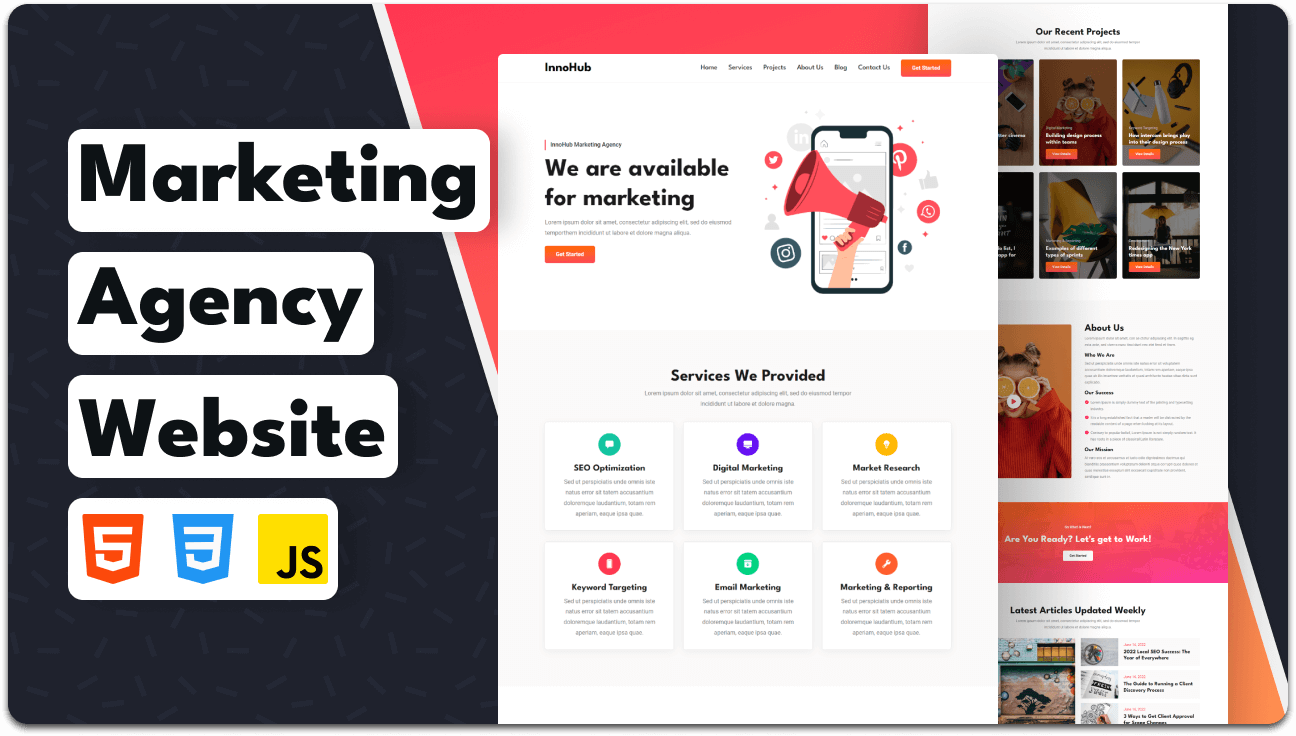 InnoHub is a fully responsive digital marketing agency website template built with HTML, CSS, and JavaScript. Perfect for agencies offering SEO, SEM, social media marketing, and branding services, InnoHub adapts seamlessly to all devices for an optimal user experience.
